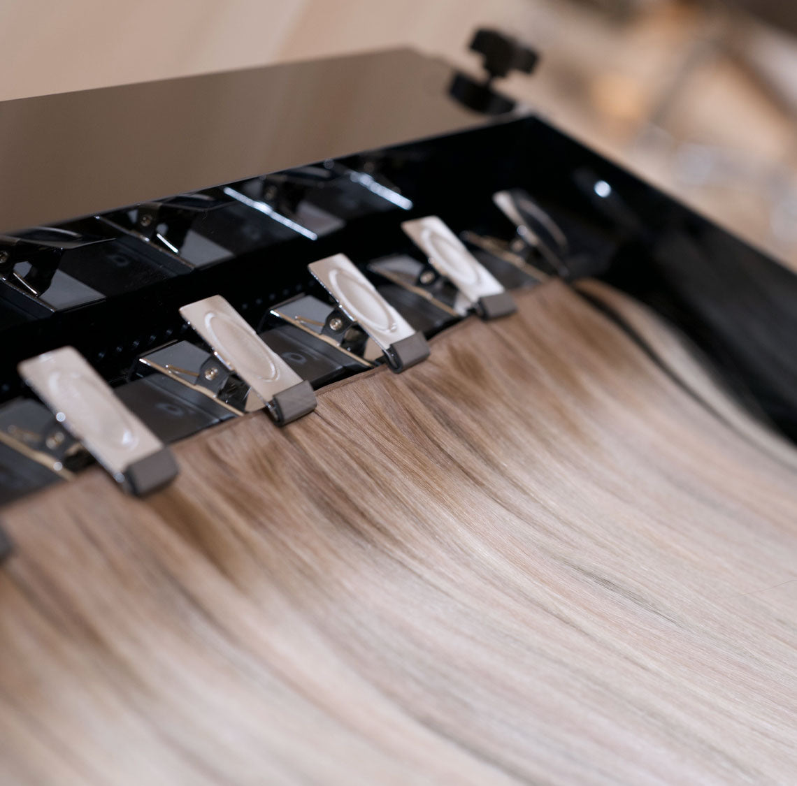 XTENS FLOW ist für die Bearbeitung aller gängigen Extensions-Arten geeignet und lässt sich nahtlos in deinen bestehenden Workflow integrieren. Ob Tape Extensions, Bondings oder Clip-Ins – das System passt sich deinem Arbeitsstil an.